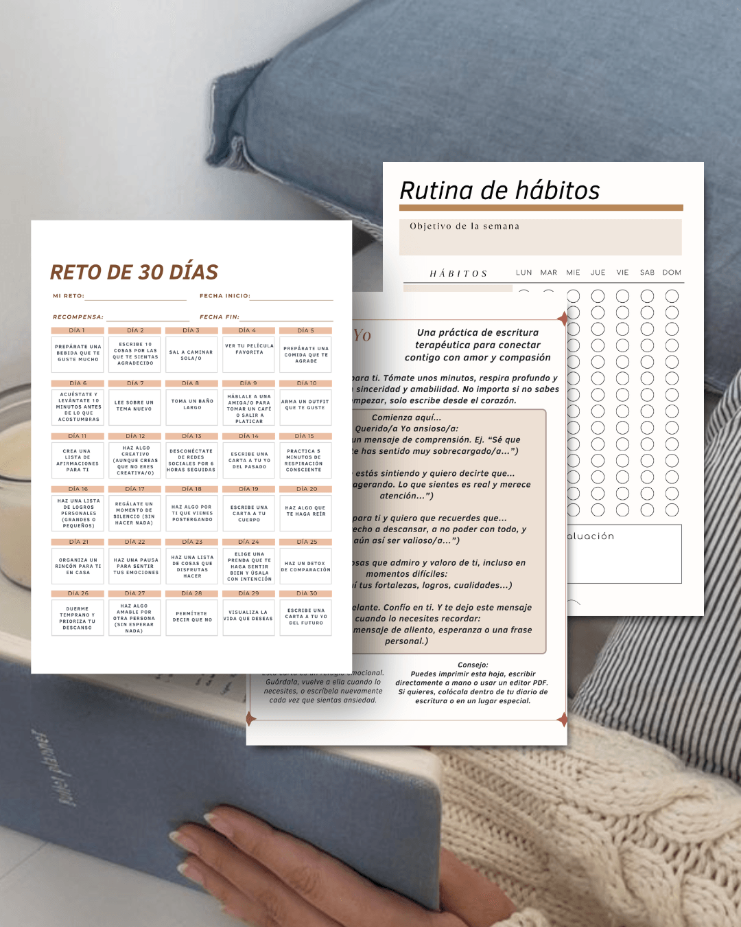 Un espacio de escritura consciente, con ejercicios diarios, afirmaciones y un reto de 30 días para volver a ti